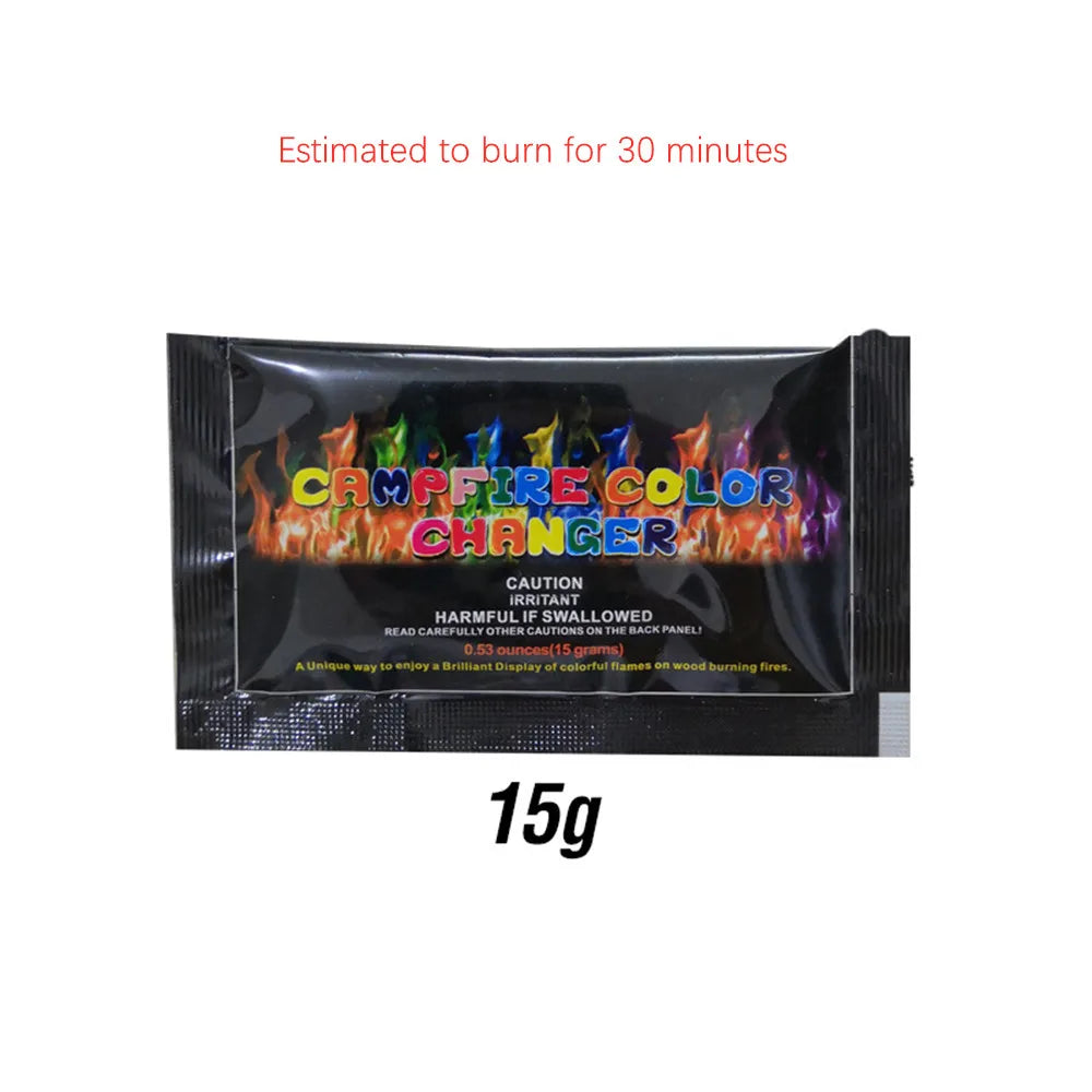 3.Create Charmal Flames: Transform any outdoor setting with Fire Color Changing Packets. Perfect for fire pits, campfires, and bonfires, these packets create stunning flames for any occasion. Use them to signal for help in emergencies or add a burst of color to firework shows and Halloween festivities. Enjoy more possibilities with this multipurpose supply.